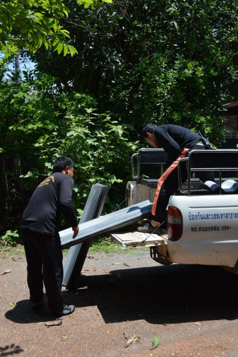 แจกกระเบื้องเนื่องจากเกิดพายุฝนในพื้นที่ตำบลหนองหล่ม