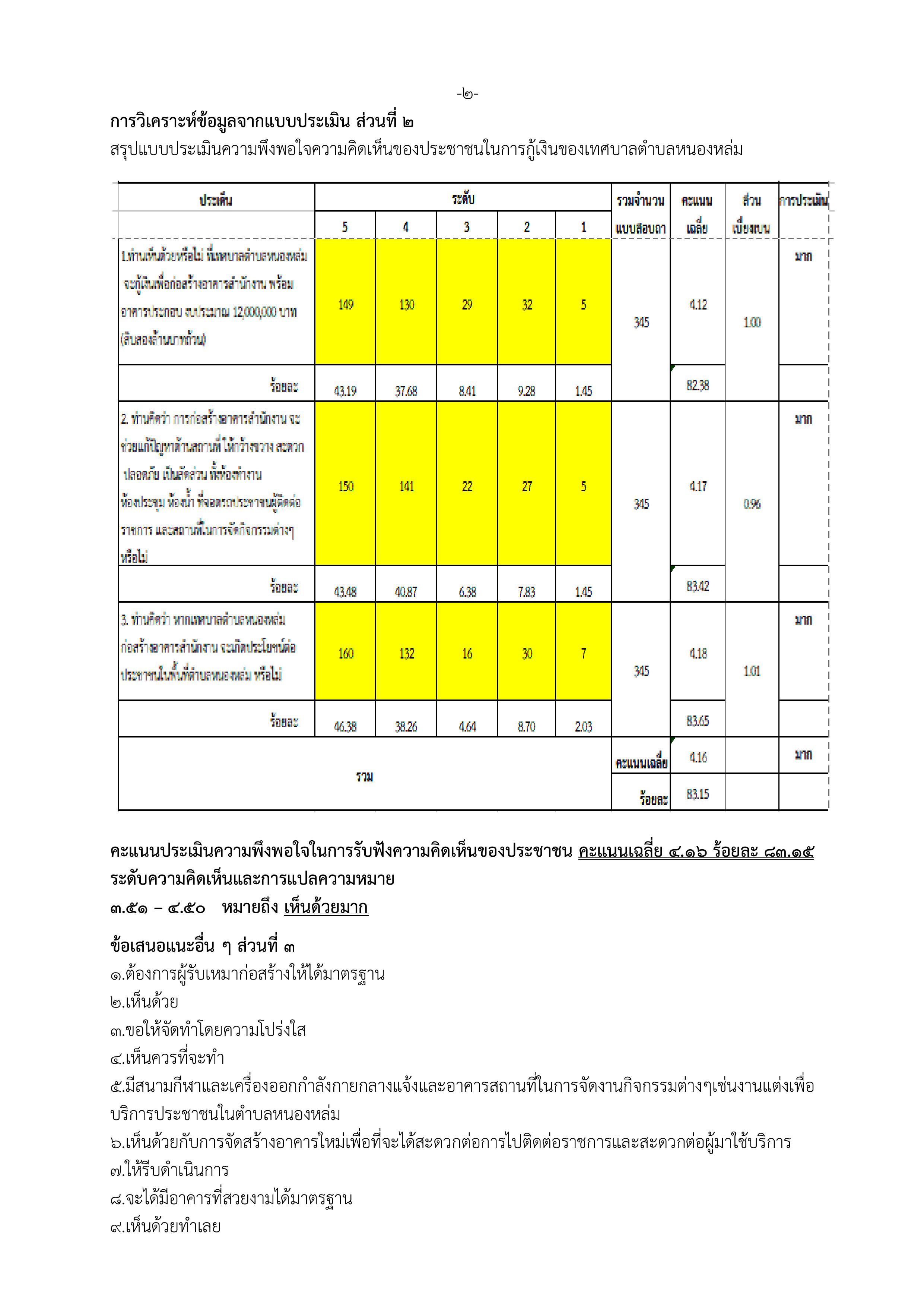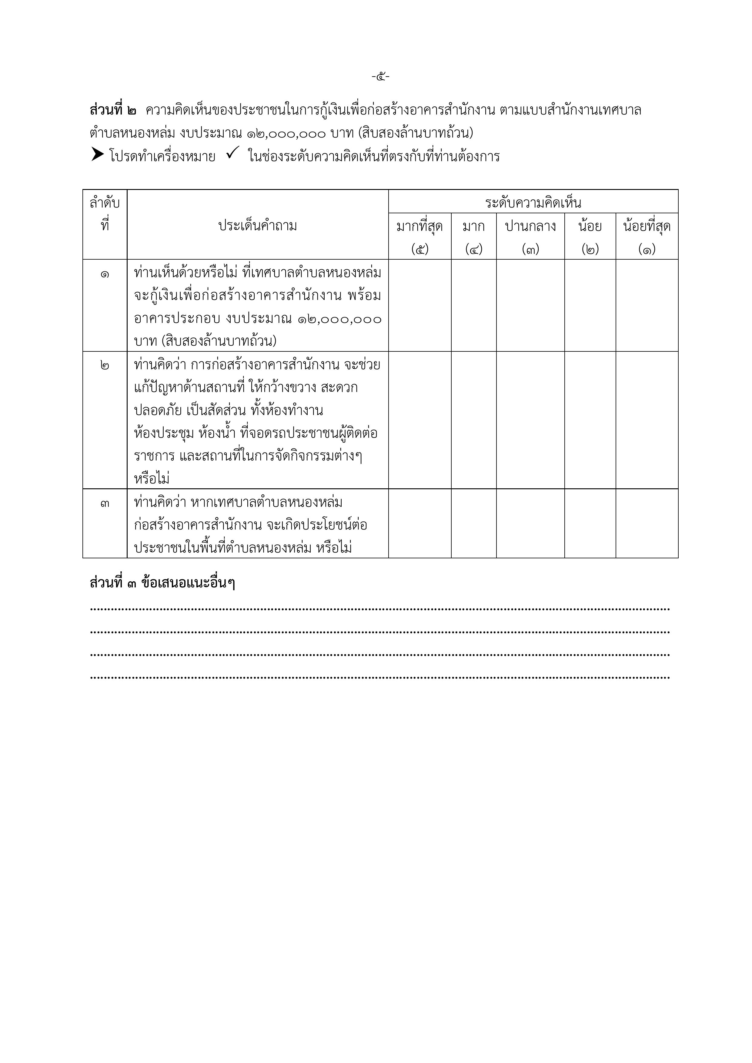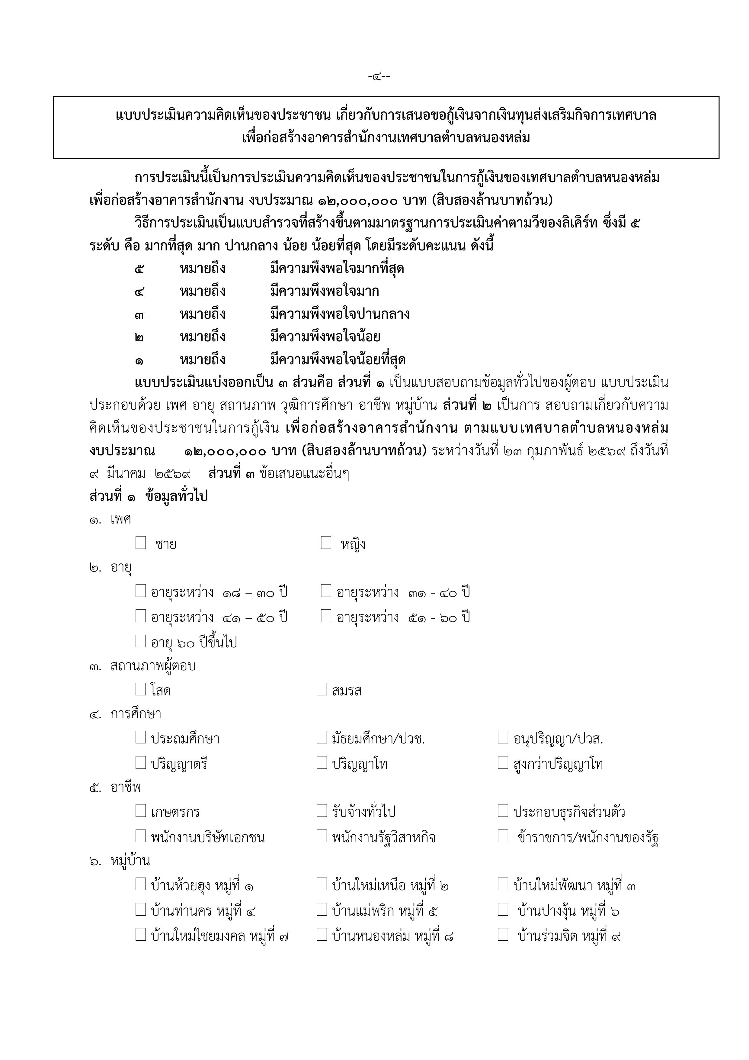 เรื่อง สรุปรับฟังความคิดเห็นประชาชนเกี่ยวกับการขอกู้เงินจากเงินทุนส่งเสริมกิจการเทศบาล เพื่อก่อสร้างอาคารสำนักงานเทศบาลตำบลหนองหล่ม