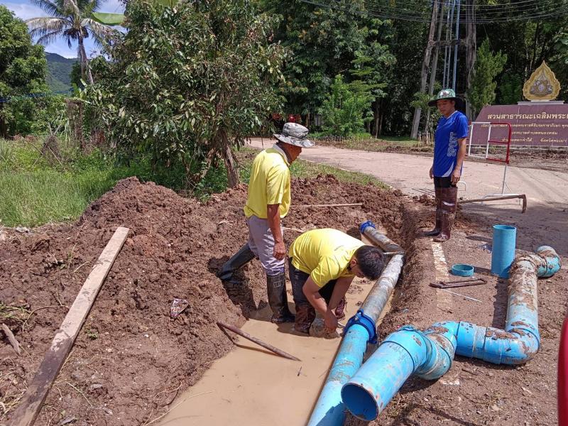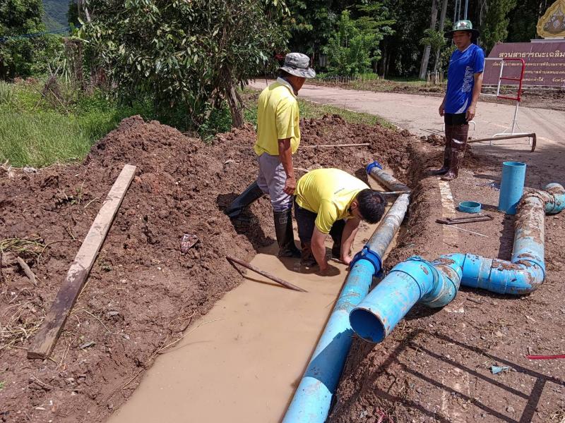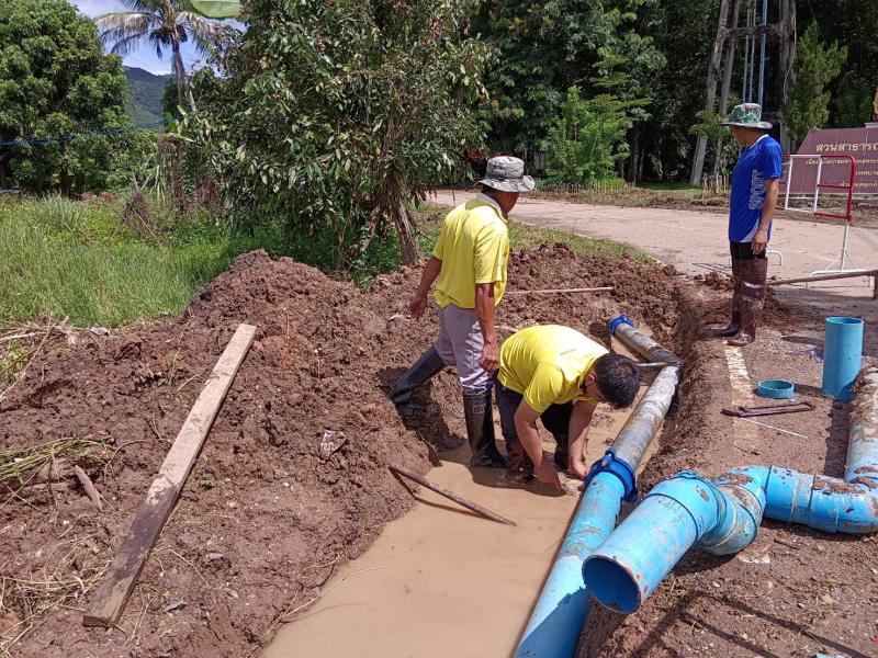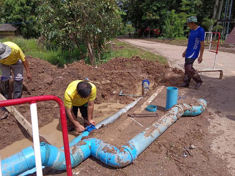 นายศิริรับ เลิศคำ นายกเทศมนตรีตำบลหนองหล่ม มอบหมายให้กองช่างทำการซ่อมท่อเมนต์ประประปาดงหอ หมู่ที่ 8