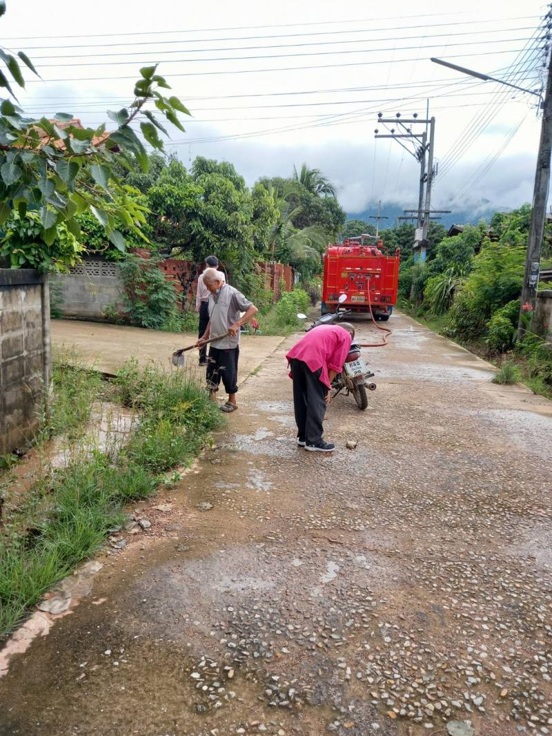 ดันท่อระบายน้ำ หมู่ที่ 3 หมู่ที่ 7 เพื่อระบายน้ำให้ไหลสะดวก