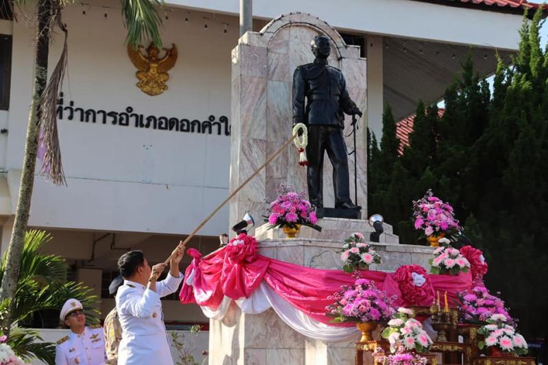 วันที่ 23 ตุลาคม 2567 เวลา 07.00 น. นายศิริรับ เลิศคำ นายกเทศมนตรีตำบลหนองหล่ม พร้อมด้วย คณะผู้บริหาร สมาชิกสภา และพนักงานเทศบาลฯ เข้าร่วมพิธีวางพวงมาลาเพื่อเป็นการน้อมรำลึกในพระมหากรุณาธิคุณ ของพระบาทสมเด็จพระจุลจอมเกล้าเจ้าอยู่หัว(รัชกาลที่ 5) โดยมี นายบำรุง คำไว นายอำเภอดอกคำใต้ เป็นประธานในพิธี ซึ่งมีหน่วยงานราชการ สถานศึกษา ผู้นำชุมชน ภาคเอกชน และประชาชนชาวอำเภอดอกคำใต้ เข้าร่วมในครั้งนี้ ณ ลานอนุสาวรีย์อำเภอดอกคำใต้