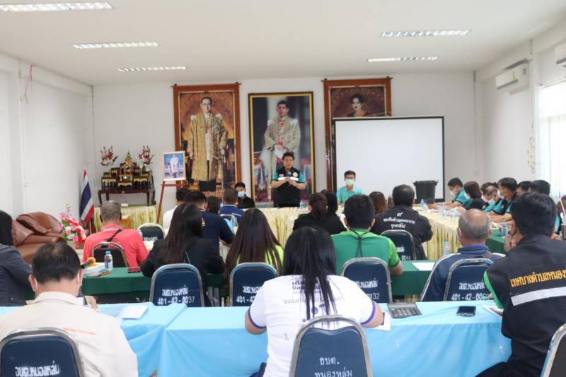 ประชุมหารือร่วมกับกำนันผู้ใหญ่บ้าน รพสต. อสม. ในพื้นที่เพื่อดำเนินการตามแนวทางการคัดแยกขยะเปียกในครัวเรือน พร้อมทั้งส่งมอบถังขยะให้กำนันและผู้ใหญ่บ้านทั้ง 9 หมู่บ้าน