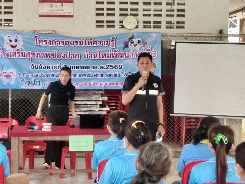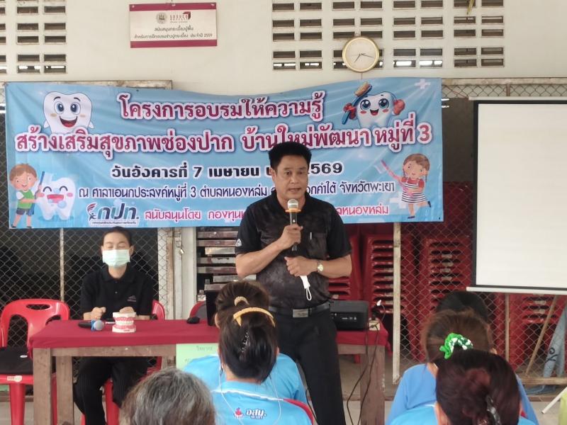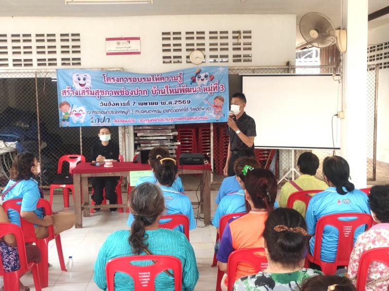 วันที่ 7 เมษายน 2569 เวลา 09.00 น. นายศิริรับ เลิศคำ นายกเทศมนตรีตำบลหนองหล่ม มอบหมายให้ร้อยตำรวจเอกทวีศักดิ์ จักร์อ้อม ที่ปรึกษานายกฯ เป็นประธานเปิดโครงการอบรมให้ความรู้ส่งเสริมสุขภาพช่องปาก บ้านใหม่พัฒนาหมู่ที่ 3 ประจำปีงบประมาณ 2569 พร้อมด้วยคณะผู้บริหาร สมาชิกสภาเทศบาลฯ งานสาธารณสุข ร่วมกับผู้ใหญ่บ้าน อสม. และประชาชนหมู่ที่ 3 เข้าร่วมโครงการฯ โดยมีนางสาวสุดารัตน์ จันเฟย นักวิชาการสาธารณสุขปฏิบัติการ เป็นวิทยากรให้ความรู้ ณ อาคารเอนกประสงค์ หมู่ 3