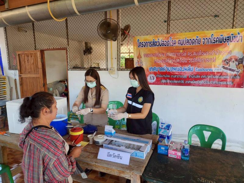 วันที่ 23 มีนาคม 2569 เวลา 09.00 น. นายศิริรับ เลิศคำ นายกเทศมนตรีตำบลหนองหล่ม พร้อมด้วยเลขานุการนายกฯ หัวหน้าสำนักปลัด งานสาธารณสุข ร่วมกับผู้ใหญ่บ้านหมู่ที่ 1 ผู้ช่วยผู้ใหญ่บ้านหมู่ที่ 1 และอาสาปศุสัตว์ประจำตำบลหนองหล่ม ลงพื้นที่ฉีดวัคซีนโรคพิษสุนัขบ้า ตามโครงการสัตว์ปลอดโรคคนปลอดภัยจากโรคพิษสุนัขบ้า ตามพระปณิธานศาสตราจารย์ ดร.สมเด็จพระเจ้าฟ้าฯ กรมพระยาศรีสวางควัฒนวรขัติยราชนารี ประจำปีงบประมาณ พ.ศ.2569 ณ อาคารเอนกประสงค์ หมู่ที่ 1 ตำบลหนองหล่ม