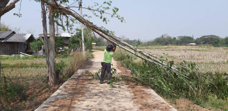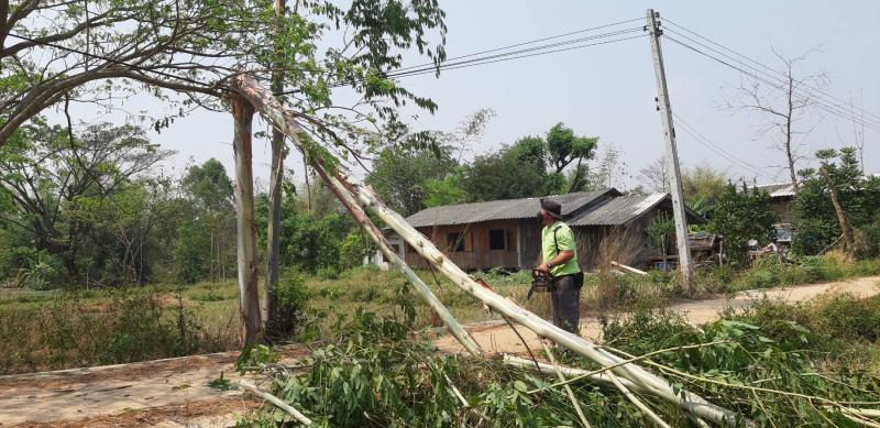 ตัดต้นไม้หักโค่นทับสายไฟฟ้า บ้านแม่พริก หมู่ที่ 5
