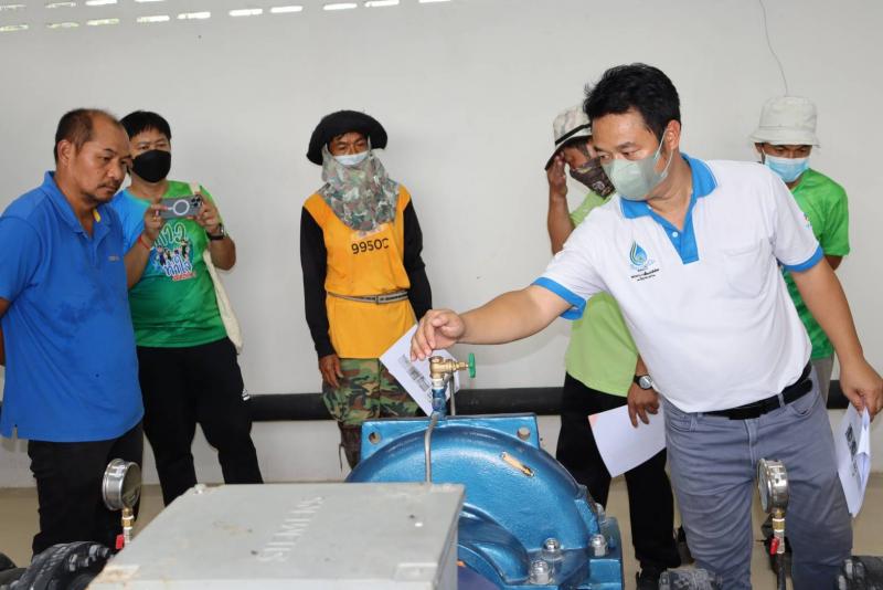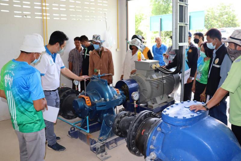 อบรมสาธิตการใช้งานระบบสถานีสูบน้ำด้วยไฟฟ้าพร้อมระบบส่งน้ำอ่างเก็บน้ำร่องสัก จากเจ้าหน้าที่โครงการชลประทานพะเยา
