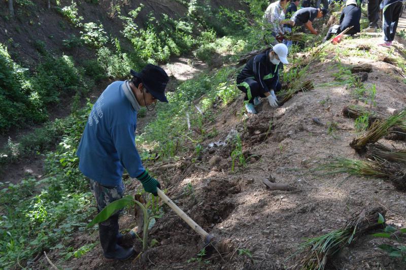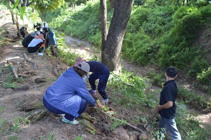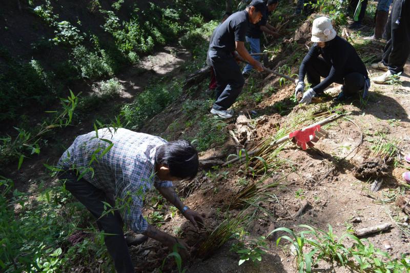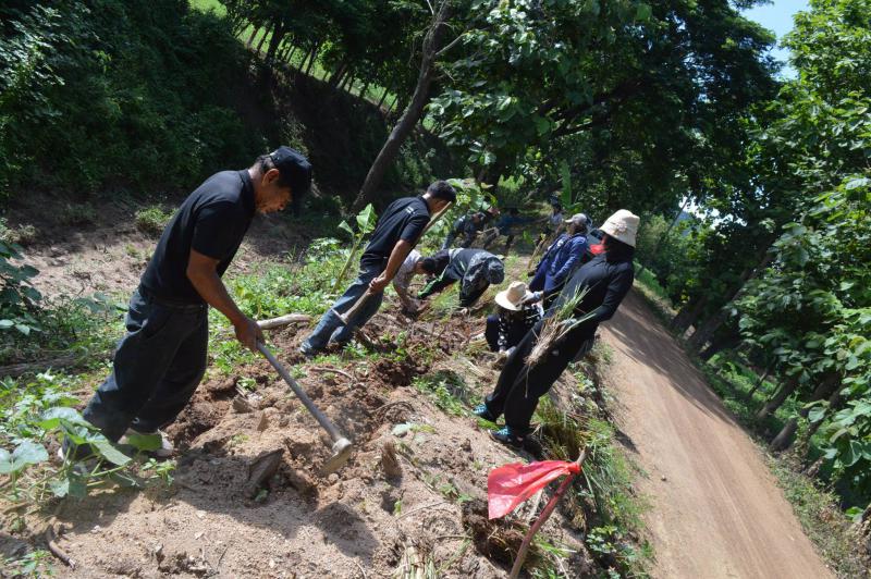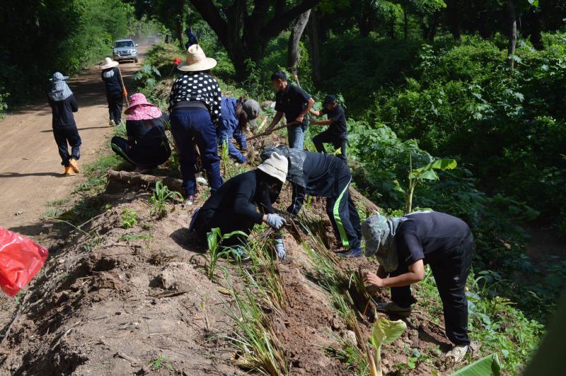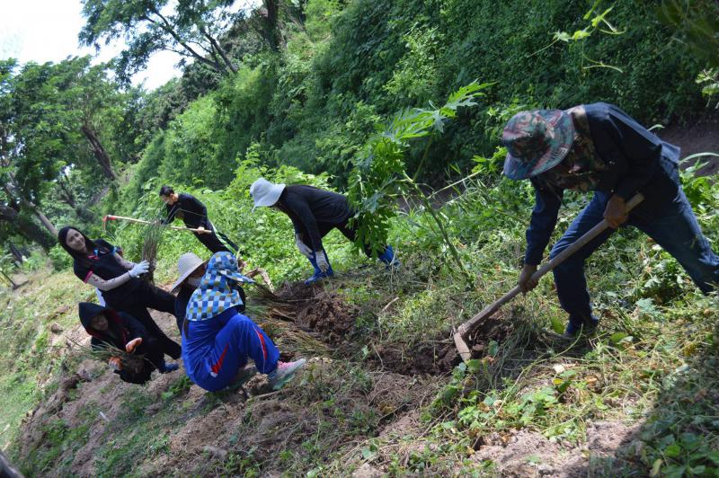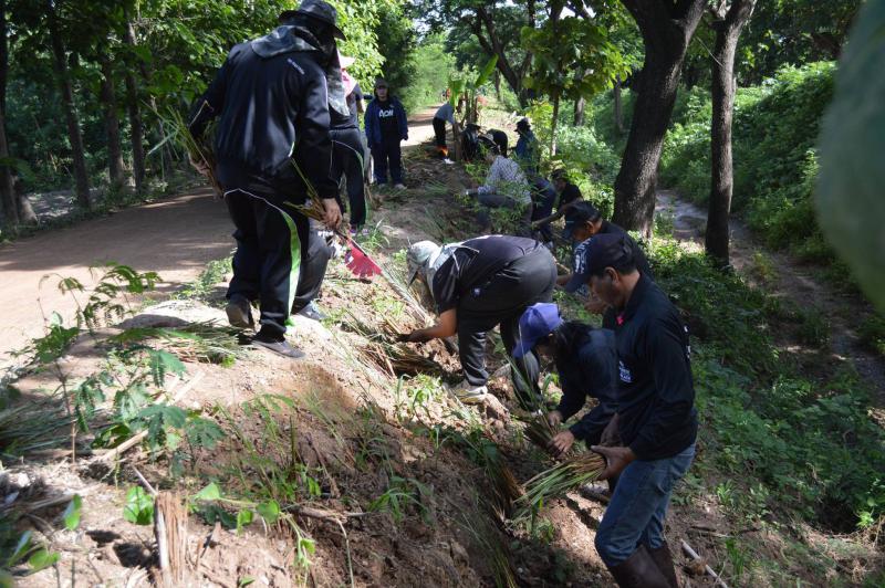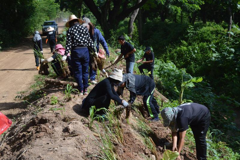 เจ้าหน้าที่ พนักงาน สมาชิกสภาเทศบาลตำบลหนองหล่ม ฝ่ายปกครอง และแกนนำชุมชน ร่วมปลูกหญ้าแฝก