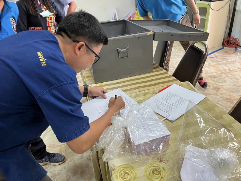 ได้ส่งมอบบัตรเลือกตั้งให้กับคณะกรรมการประทับตราบัตรเลือกตั้ง เพื่อดำเนินการประทับตราบนบัตรเลือกตั้ง ณ ห้องประชุมเทศบาลตำบลหนองหล่ม
