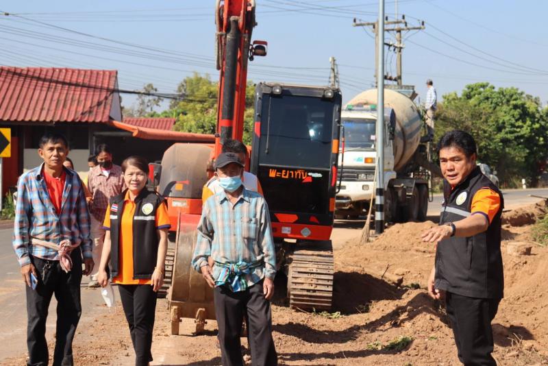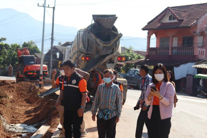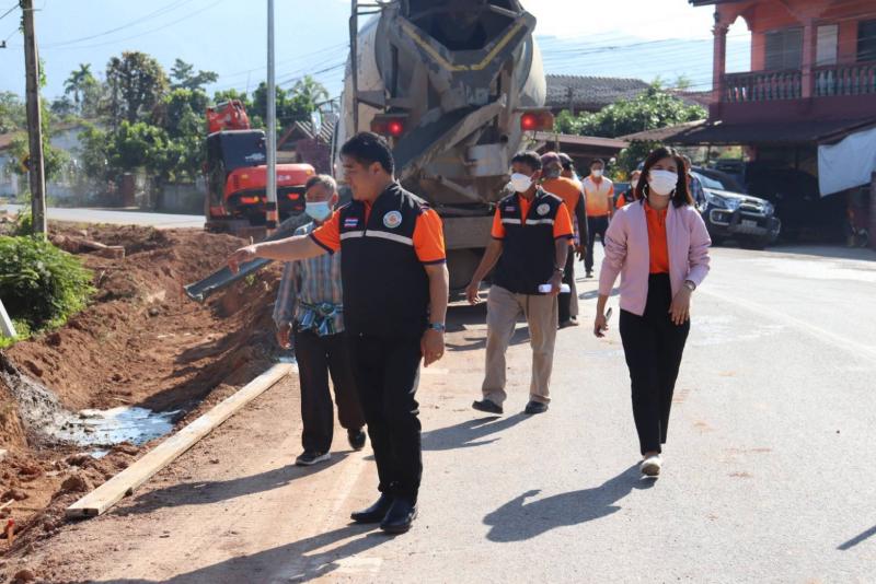 นายศิริรับ เลิศคำ นายกเทศมนตรีตำบลหนองหล่ม ลงพื้นที่เยี่ยมและให้กำลังใจการทำงานโครงการก่อสร้างทางระบายน้ำและทำถนนทางหลวงเส้น 1251