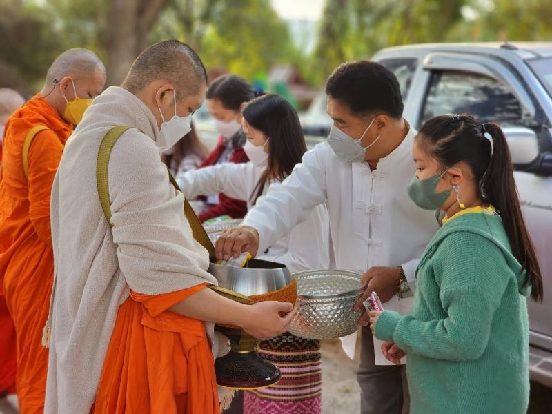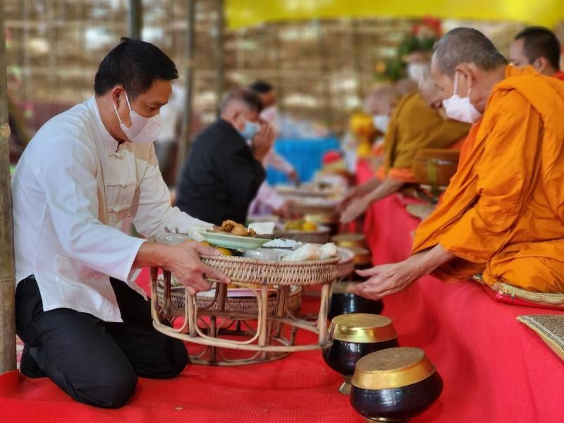 นายศิริรับ เลิศคำ นายกเทศมนตรีตำบลหนองหล่ม ทำบุญตักบาตรข้าวสารอาหารแห้ง ณ ป่าสุสานตำบลหนองหล่ม
