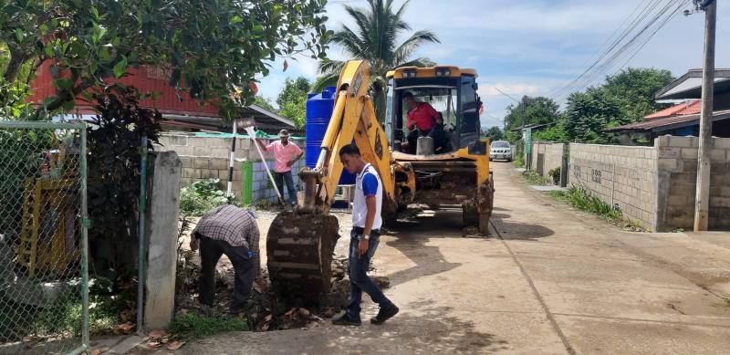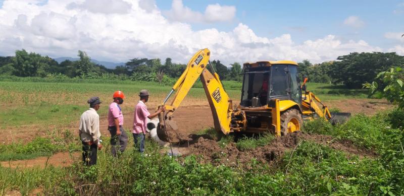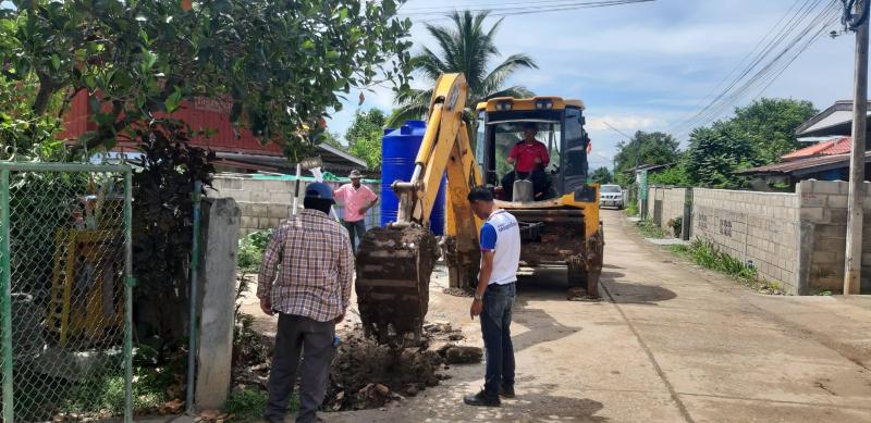 วางท่อถนนเพื่อการเกษตรและขุดลอกร่องน้ำในซอยหมู่ที่ 4 ตำบลป่าซาง