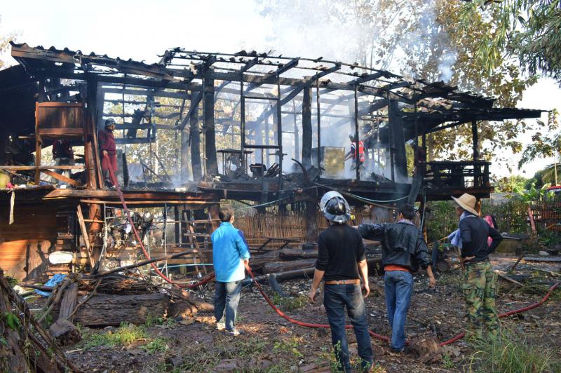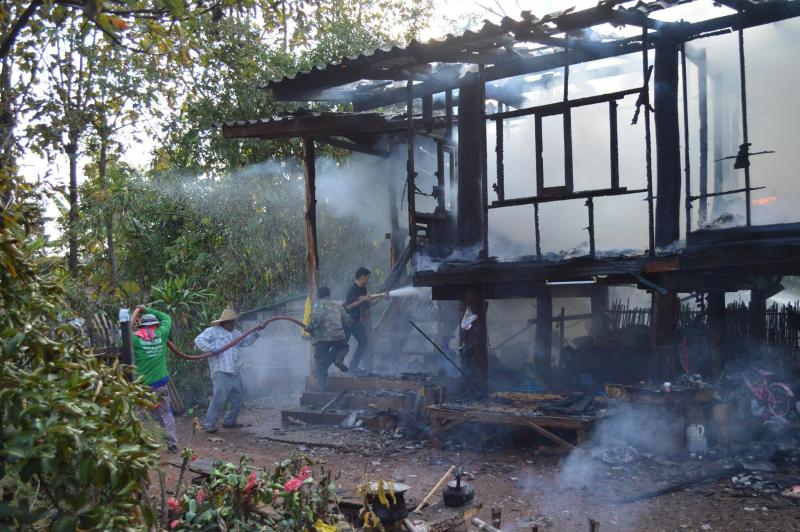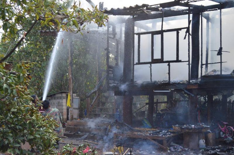 อ.ดอกคำใต้ จ.พะเยา บ้านถูกเพลิงไหม้เสียหายทั้งหลัง