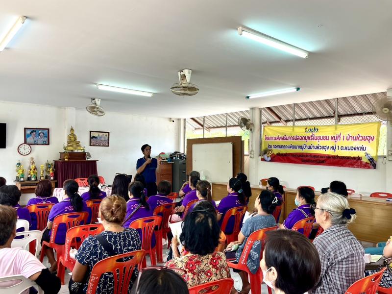 วันที่ 18 พฤษภาคม 2567 เวลา 09.00 น. นายศิริรับ เลิศคำ ประธานกองทุนหลักประกันสุขภาพเทศบาลตำบลหนองหล่ม เป็นประธานเปิดโครงการส่งเสริมการปลอดบุหรี่ในชุมชน หมู่ที่ 1 บ้านห้วยฮุง ประจำปีงบประมาณ 2567 โดยมี คณะผู้บริหาร สมาชิกสภาเทศบาลฯ หัวหน้าสำนักปลัด งานสาธารณสุข และประชาชนในพื้นที่หมู่ที่ 1 เข้าร่วมโครงการฯ ณ อาคารเอนกประสงค์ หมู่ที่ 1 ตำบลหนองหล่ม