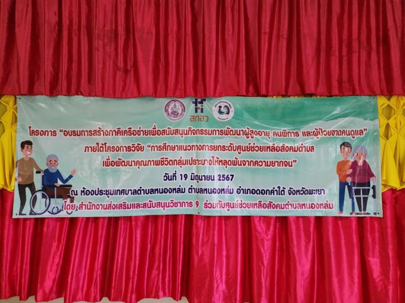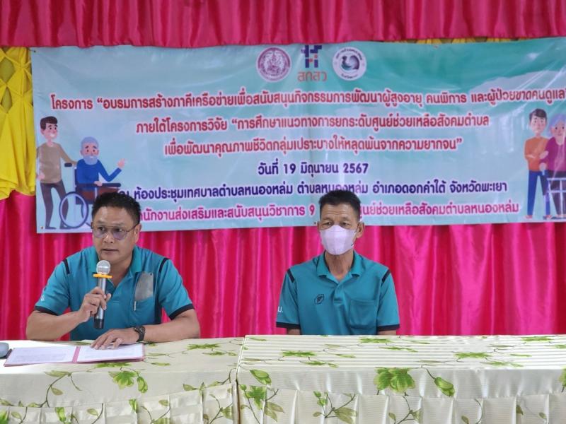 วันที่ 19 มิถุนายน 2567 เวลา 09.00 น. นายศิริรับ เลิศคำ นายกเทศมนตรีตำบลหนองหล่ม มอบหมายให้ นายนาทจันต๊ะวงค์ รองนายกฯ เป็นประธานเปิดโครงการ "อบรมการสร้างภาคีเครือข่ายเพื่อสนับสนุนกิจกรรมการพัฒนาผู้สูงอายุ คนพิการ และผู้ป่วยขาดคนดูแล" ภายใต้โครงการวิจัย "การศึกษาแนวทางการยกระดับศูนย์ช่วยเหลือสังคมตำบล เพื่อพัฒนาคุณภาพชีวิตกลุ่มเปราะบางให้หลุดพ้นความยากจน" พร้อมด้วย คณะผู้บริหาร หัวหน้าสำนักปลัด งานพัฒนาชุมชน และพนักงานเทศบาล ร่วมกับ สมาชิกสภาฯ คณะทำงานศูนย์ช่วยเหลือสังคม อสม. ผู้สูงอายุ คนพิการ และผู้ช่วยคนพิการ(PA) ตำบลหนองหล่ม เข้าร่วมโครงการฯ ณ ห้องประชุมเทศบาลตำบลหนองหล่ม จำนวน 100 คน