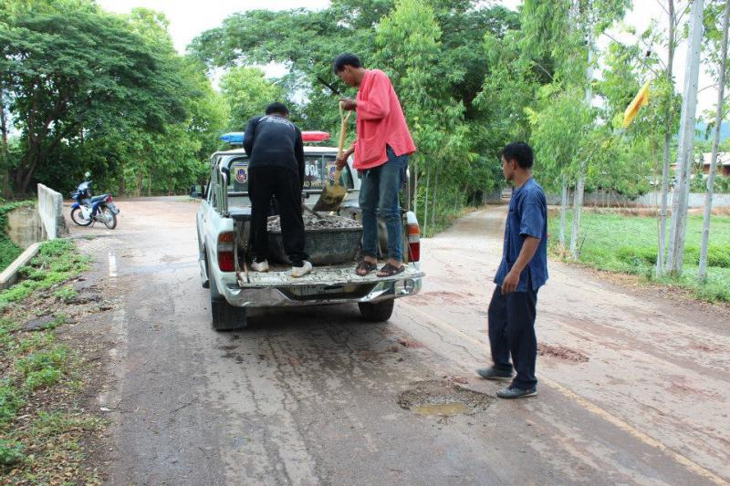 ป้องกันและบรรเทาสาธารณภัย ได้ออกพื้นที่สำรวจและซ่อมแซมถนนที่ชำรุดเป็นหลุมเป็นบ่อ