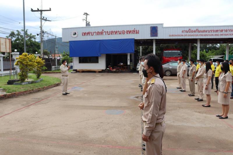 กิจกรรมเคารพธงชาติไทยหน้าเสาธง สำนักงานเทศบาลตำบลหนองหล่ม