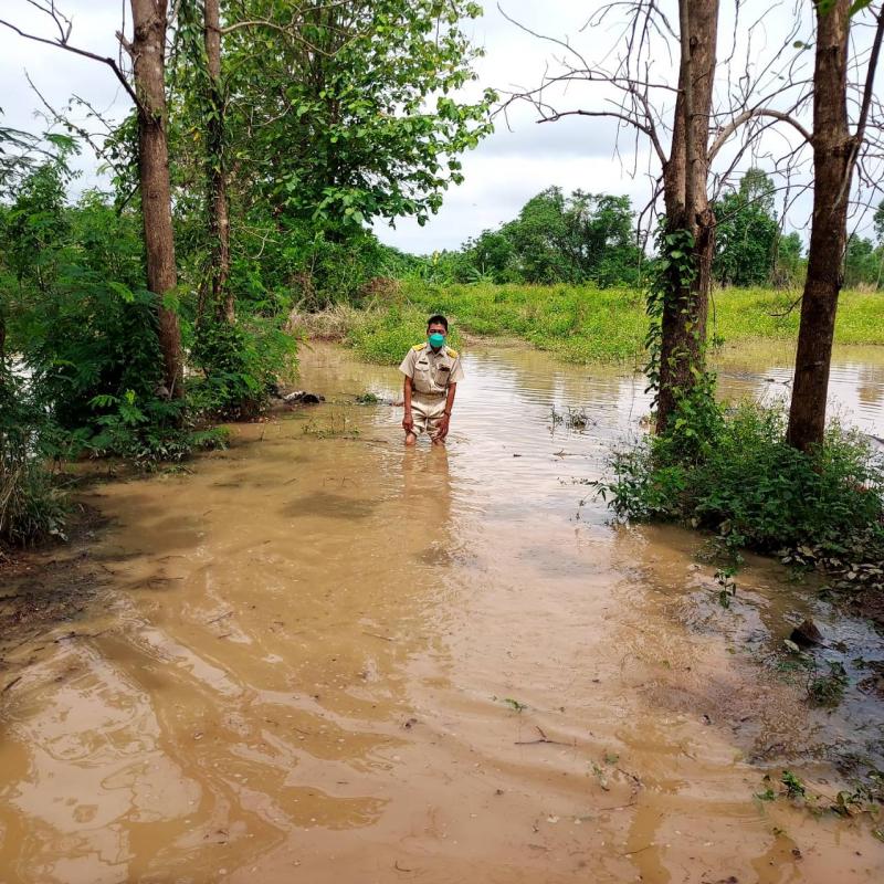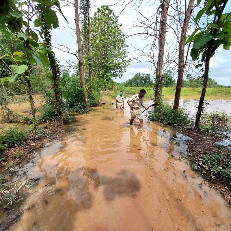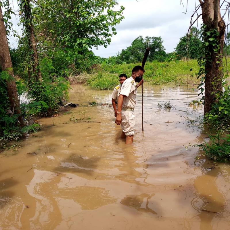 สำรวจน้ำท่วมสวนลำไยเกษตรกรในเขตพื้นที่หมู่ที่ 5