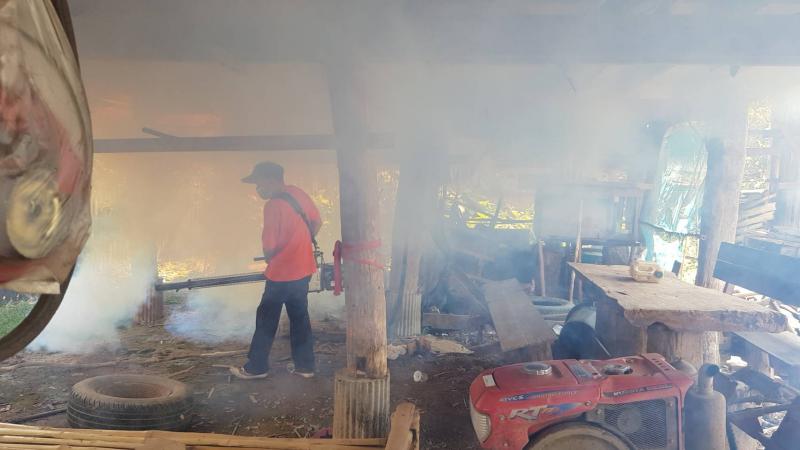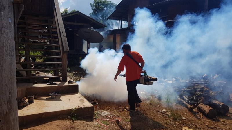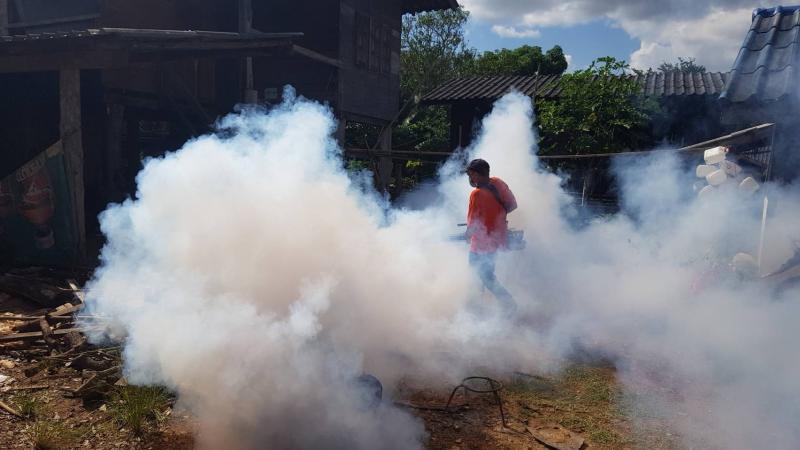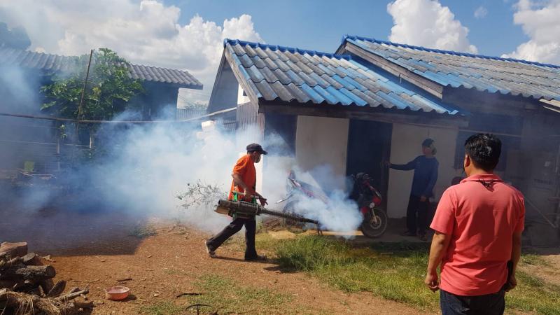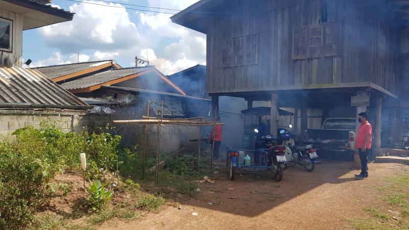 พ่นหมอกควันกำจัดยุงลายบริเวณ หมู่ 8 ตำบลหนองหล่ม