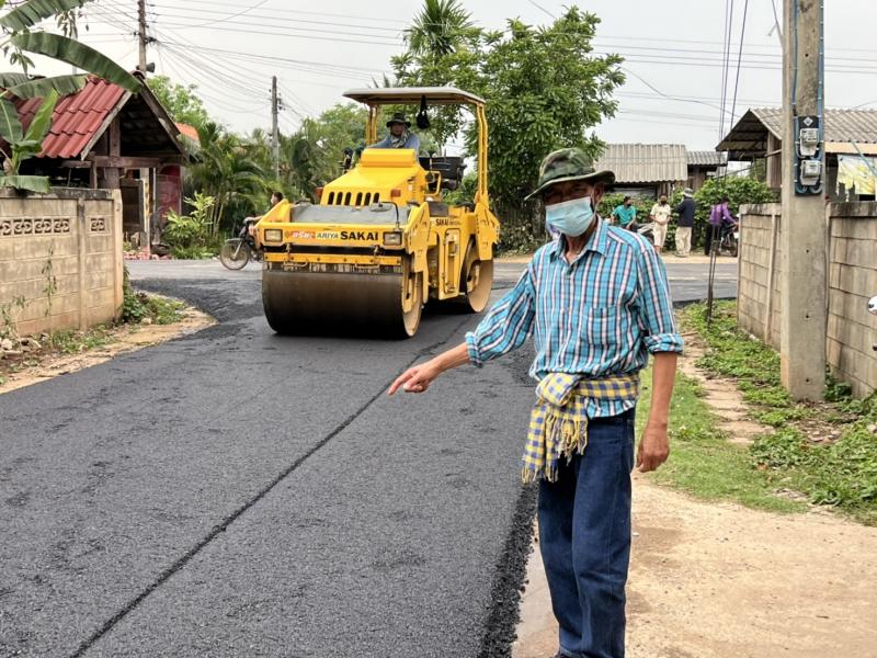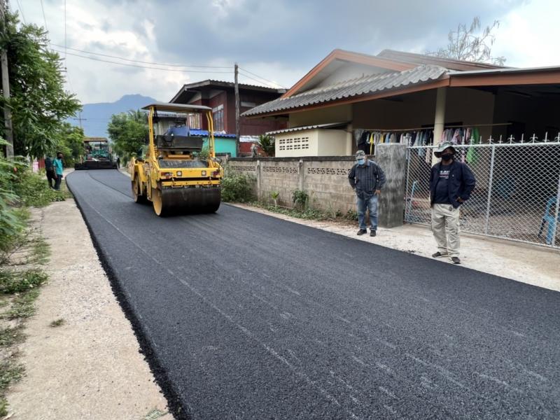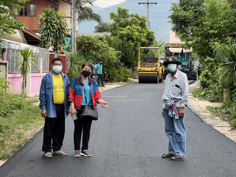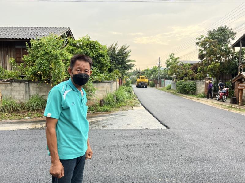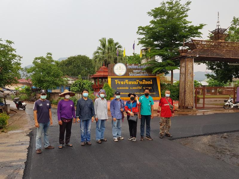 ตรวจงานปรับปรุงถนนเสริมผิวทางแอสฟัลท์ติกคอนกรีตสายทางเข้าโรงเรียนบ้านใหม่ หมู่ที่ 2,3,7