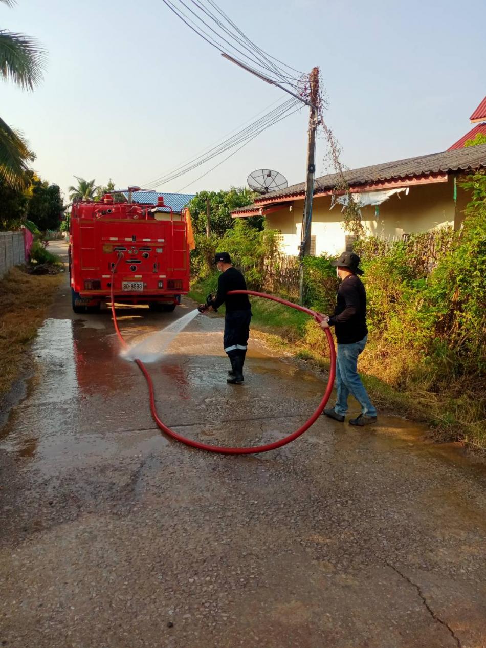 ฉีดล้างทำความสะอาดผิวถนน บ้านห้วยฮุง หมู่ที่ 1 [10 กุมภาพันธ์ 2565]
