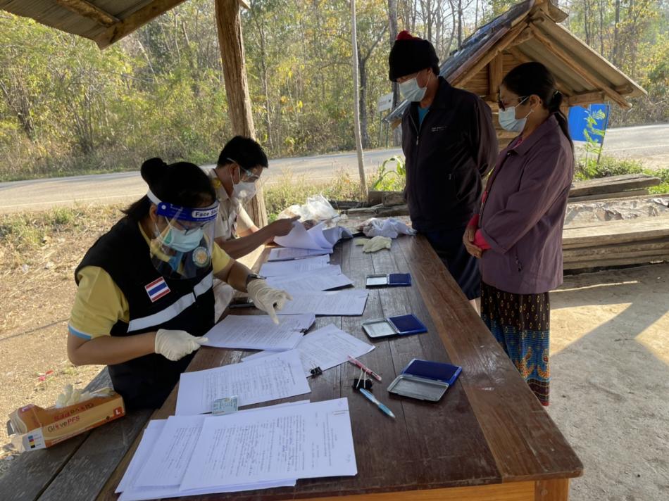 เก็บข้อมูลผู้สัมผัสเสี่ยงสูงผู้ป่วยโควิด 19 ที่ได้กักตัว ณ บ้านเจริญทรัพย์ หมู่ที่ 5 [14 กุมภาพันธ์ 2565]