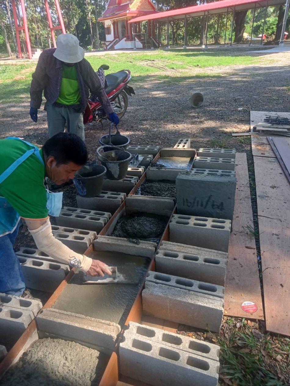 เทฝาคอนกรีตรางระบายน้ำเพื่อนำไปซ่อมแซมฝารางระบายน้ำภายในหมู่บ้านที่เสียหาย [17 พฤศจิกายน 2564]