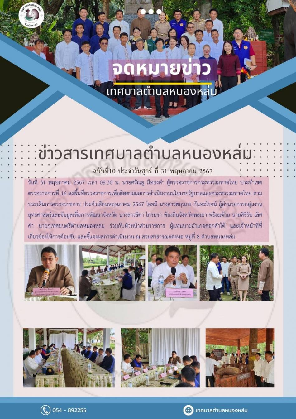 วันที่ 4 มิถุนายน 2567 เวลา 09.00 น. นายศิริรับ เลิศคำ นายกเทศมนตรีตำบลหนองหล่ม พร้อมด้วยรองนายกเทศมนตรีตำบลหนองหล่ม สมาชิกสภาเทศบาลตำบลหนองหล่ม และงานพัฒนาชุมชน ร่วมกับ กำนันผู้ใหญ่บ้านตำบลหนองหล่ม... [4 มิถุนายน 2567]