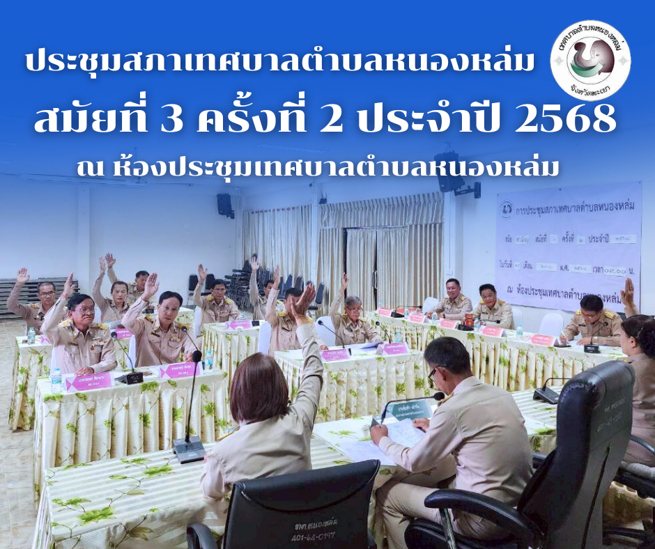 วันที่ 25 สิงหาคม 2568 เวลา 09.00 น. เทศบาลตำบลหนองหล่มจัดประชุมสภาเทศบาลตำบลหนองหล่ม สมัยสามัญ สมัยที่ 3 ครั้งที่ 2 ประจำปี 2568 โดยมีนายอิ่นคำ เผ่าตัน ประธานสภาเทศบาลตำบลหนองหล่ม เป็นประธานในการประชุม พร้อมด้วย... [25 สิงหาคม 2568]