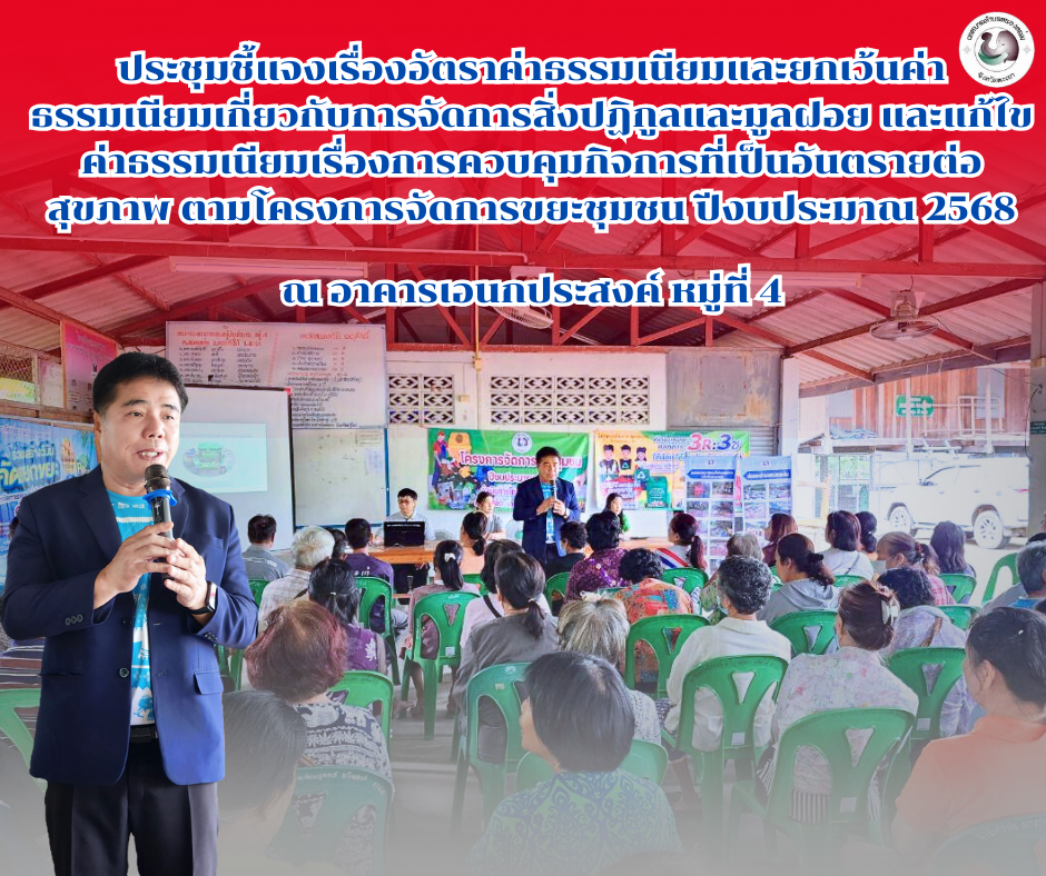 ????️????️วันที่ 8 กันยายน 2568 เวลา 09.00 น. นายศิริรับ เลิศคำ นายกเทศมนตรีตำบลหนองหล่ม เป็นประธานเปิดการประชุมชี้แจงเรื่องอัตราค่าธรรมเนียมและยกเว้นค่าธรรมเนียมเกี่ยวกับการจัดการสิ่งปฏิกูลและมูลฝอย... [8 กันยายน 2568]