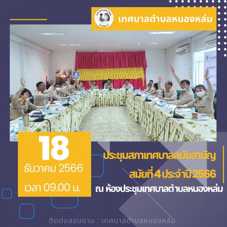 วันที่ 18 ธันวาคม 2566 เวลา 09.00 น. เทศบาลตำบลหนองหล่ม จัดประชุมสภาเทศบาลสมัยสามัญ สมัยที่ 4 ประจำปี 2566 โดยมี นายอิ่นคำ เผ่าตัน ประธานสภาเทศบาลตำบลหนองหล่ม เปิดการประชุม นายปฏิภาณ เผ่าดี ทำหน้าที่เลขานุการสภาเทศบาล... [18 ธันวาคม 2566]