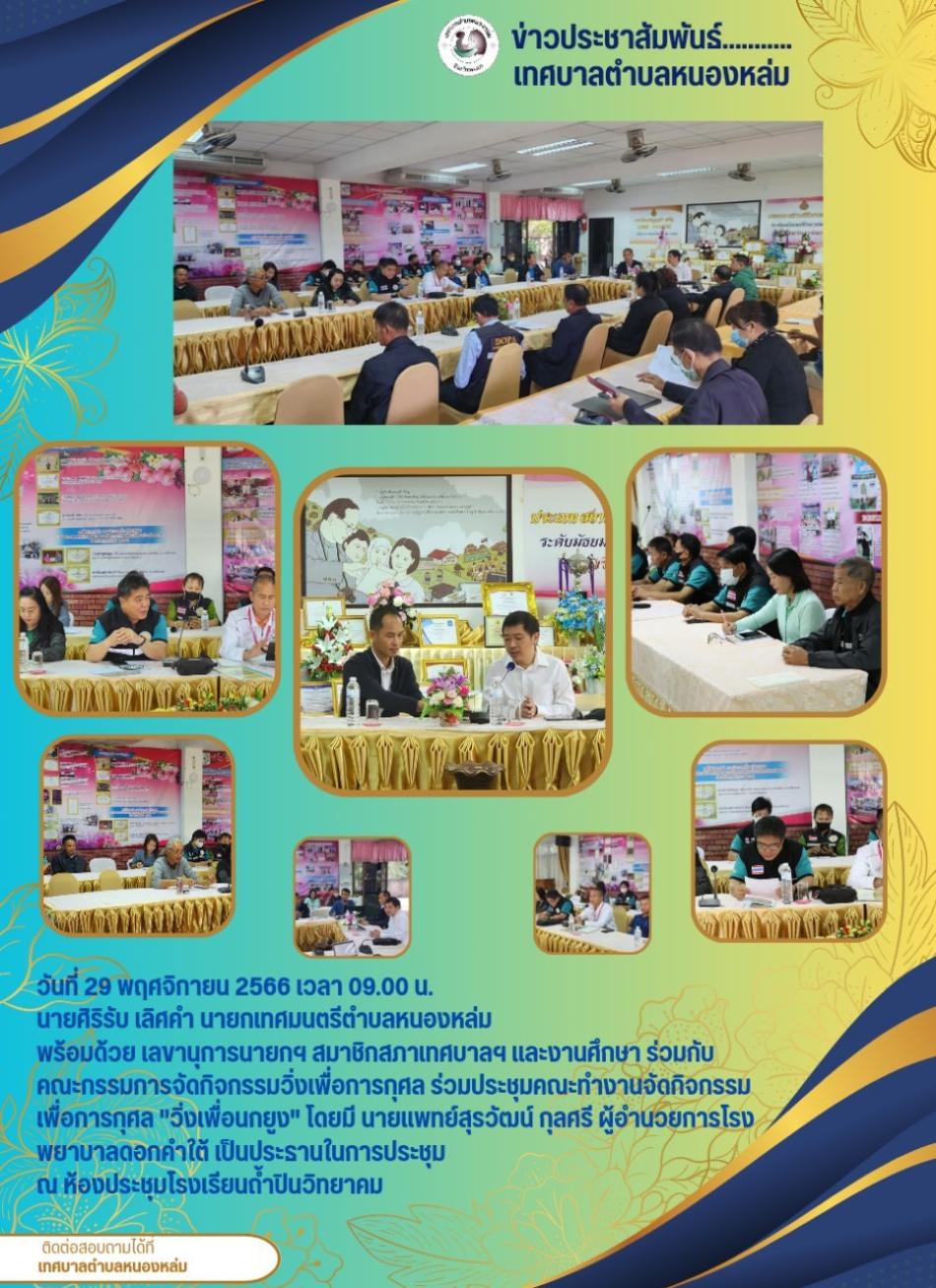 วันที่ 6 ธันวาคม 2566 เวลา 11.00น.นายศิริรับ เลิศคำ นายกเทศมนตรีตำบลหนองหล่ม มอบหมายให้ งานสาธารณสุขประชุมชี้แจงเรื่องการประชาสัมพันธ์เทศบัญญัติเทศบาลตำบลหนองหล่ม เรื่องการควบคุมกิจการที่เป็นอันตรายต่อสุขภาพ พ.ศ.2562 ณ... [6 ธันวาคม 2566]