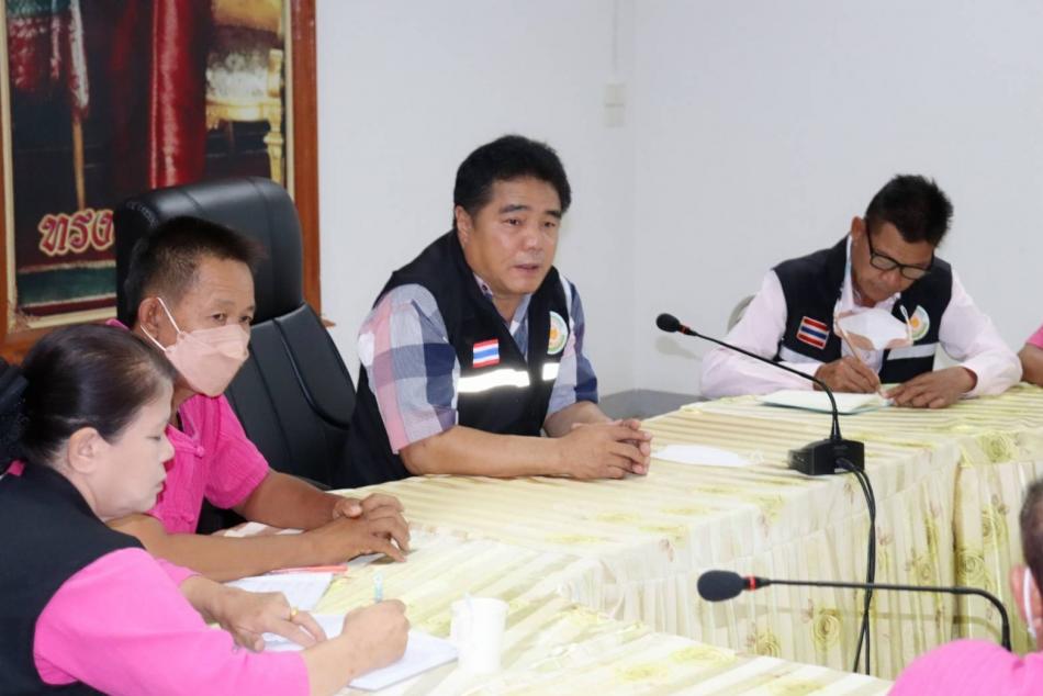 นายศิริรับ เลิศคำ นายกเทศมนตรีตำบลหนองหล่ม พร้อมคณะผู้บริหาร สมาชิกสภาเทศบาล ประชุมชี้แจ้งโครงการปรับปรุงผิวทางโดยลงลูกรังบดอัดแน่น [4 กรกฎาคม 2565]