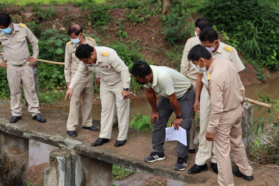 คณะผู้บริหาร สมาชิกสภาเทศบาล และกองช่าง ร่วมกับผู้ใหญ่บ้านหมู่ที่ 2 บ้านใหม่เหนือ ลงพื้นที่สำรวจฝายกั้นน้ำห้วยฮุงชำรุด [4 กรกฎาคม 2565]