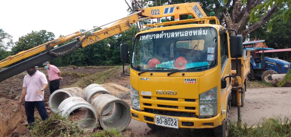 นายศิริรับ เลิศคำ นายกเทศมนตรีตำบลหนองหล่ม มอบหมายให้ กองช่างทำการวางท่อถนนชนบทสายบ้านหนองหล่มเชื่อมต่อบ้านปิน [5 กรกฎาคม 2565]