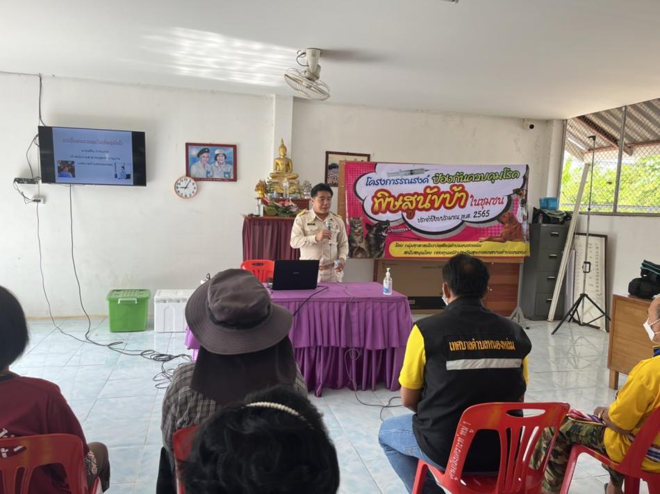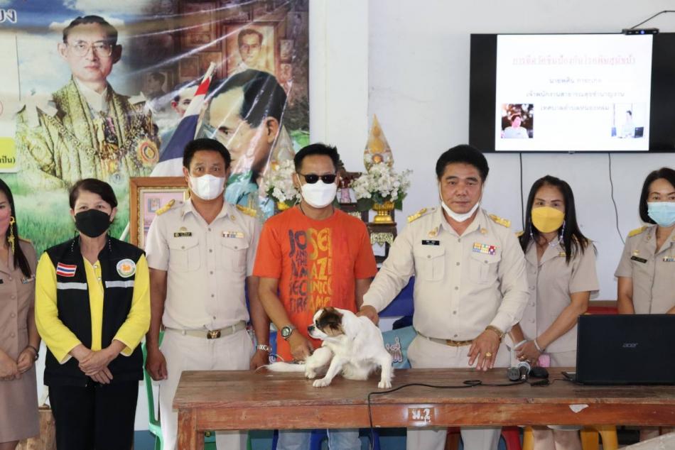 นาย ศิริรับ เลิศคำ นายกเทศมนตรี ตำบลหนองหล่ม พร้อมคณะผู้บริหาร สมาชิกสภาเทศบาล เข้าร่วมโครงการรณรงค์ป้องกันควบคุมโรคพิษสุนัขบ้าในชุมชน ประจำปีงบประมาณ 2565 ณ อาคารเอนกประสงค์ หมู่ที่ 2 [27 มิถุนายน 2565]