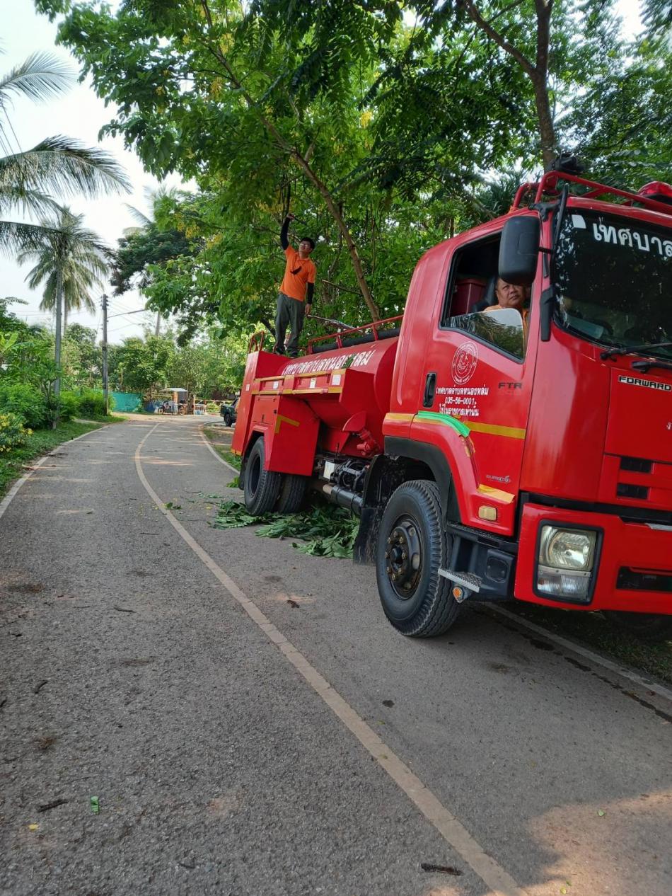 ตัดกิ่งต้นไม้บริเวณรอบสวนสาธารณะเฉลิมพระเกียรติดงหอ หมู่ที่ 8 [28 เมษายน 2565]