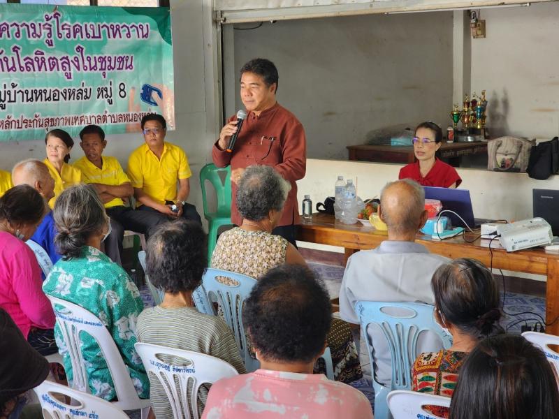 วันที่ 12 กรกฎาคม 2567 เวลา 09.00 น. นายศิริรับ เลิศคำ นายกเทศมนตรีตำบลหนองหล่ม เป็นประธานเปิดโครงการอบรมให้ความรู้เรื่องโรคเบาหวานและโรคความดันโลหิตสูงในชุมชน โดยมี คณะผู้บริหาร สมาชิกสภาเทศบาลฯ งานสาธารณสุข และประชาชนหมู่ที่ 8 เข้าร่วมโครงการฯ ณ อาคารเอนกประสงค์ หมู่ที่ 8 ตำบลหนองหล่ม