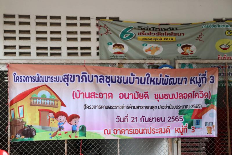 โครงการพัฒนาระบบสุขาภิบาลชุมชน(บ้านสะอาด อนามัยดี ชุมชนปลอดโควิด) หมู่ที่ 3 ประจำปีงบประมาณ 2565