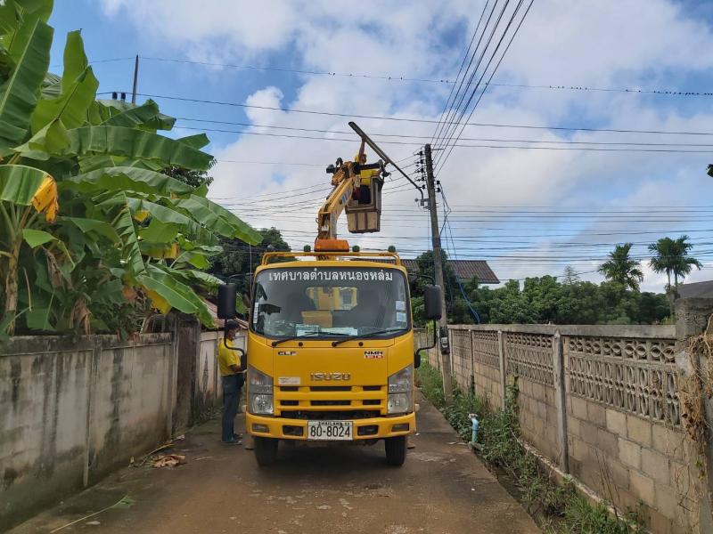 รายละเอียด : วันที่ 1 พฤศจิกายน 2564 นายศิริรับ เลิศคำ นายกเทศมนตรีตำบลหนองหล่ม มอบหมายงานกองช่างดำเนิการซ่อมแซมไฟฟ้าสาธารณะและย้ายสายกล้อง หมู่ที่ 2