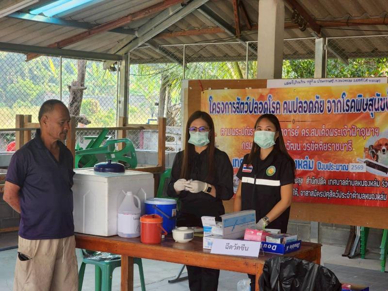 วันที่ 26 มีนาคม 2569 เวลา 09.00 น. นายศิริรับ เลิศคำ นายกเทศมนตรีตำบลหนองหล่ม มอบหมายให้ หัวหน้าสำนักปลัด งานสาธารณสุข ร่วมกับผู้ใหญ่บ้าน ผู้ช่วยผู้ใหญ่บ้านหมู่ที่4 และอาสาปศุสัตว์ประจำตำบลหนองหล่ม ลงพื้นที่ฉีดวัคซีนโรคพิษสุนัขบ้า ตามโครงการสัตว์ปลอดโรคคนปลอดภัยจากโรคพิษสุนัขบ้า ตามพระปณิธานศาสตราจารย์ ดร.สมเด็จพระเจ้าฟ้าฯ กรมพระยาศรีสวางควัฒนวรขัติยราชนารี ประจำปีงบประมาณ พ.ศ.2569 ณ อาคารเอนกประสงค์ หมู่ที่4 ตำบลหนองหล่ม