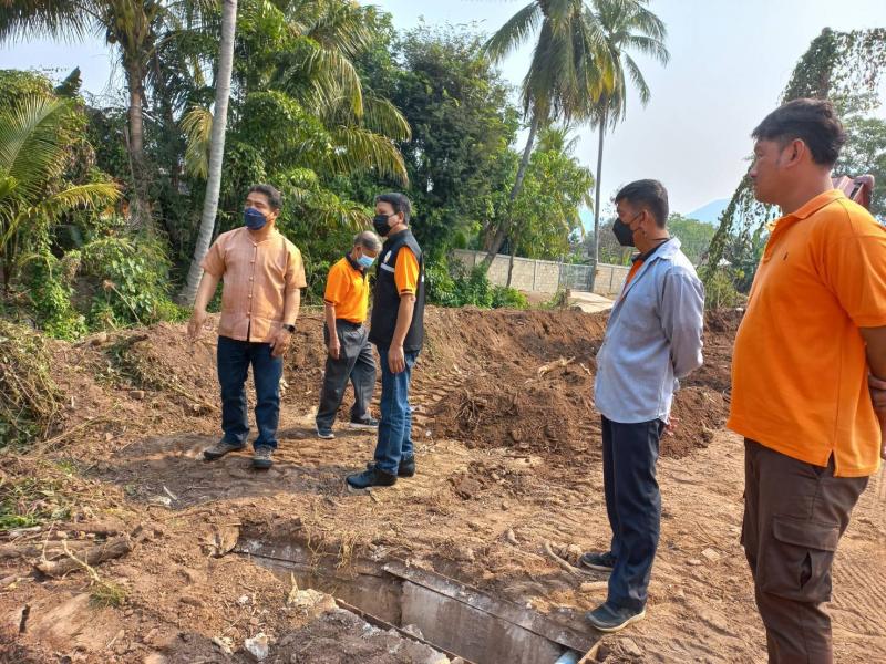 ตรวจการดำเนินงานโครงการก่อสร้างศาลาประกอบพิธีคริสตจักรและปรับถมดินบริเวณฌาปนสถานตำบลหนองหล่ม
