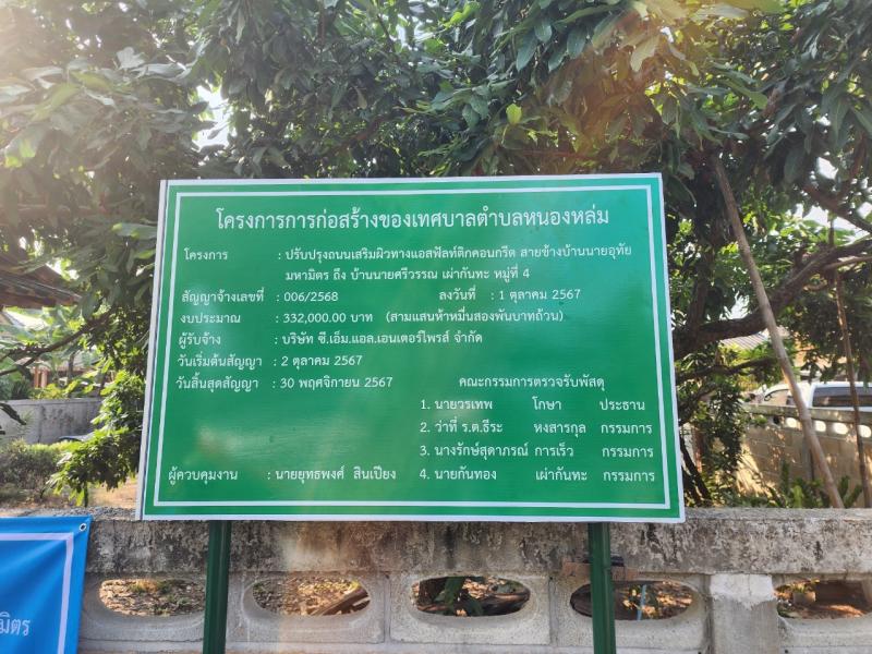 วันที่ 6 ธันวาคม 2567 เวลา 09.00 น. คณะกรรมการตรวจรับงานจ้าง พร้อมด้วยช่างควบคุมงานลงพื้นที่ตรวจงานจ้างโครงการปรับปรุงถนนเสริมผิวทางแอสฟัลท์ติกคอนครีต สายข้างบ้านนายอุทัย มหามิตร ถึงบ้านนายศรีวรรณ เผ่ากันทะ หมู่ที่ 4