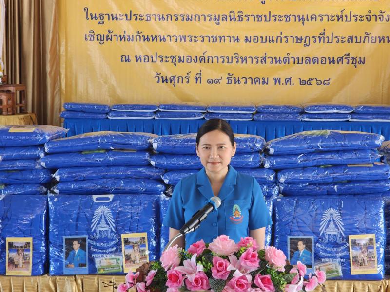 วันที่ 19 ธันวาคม 2568 เวลา 13.30 น. นายศิริรับ เลิศคำ นายกเทศมนตรีตำบลหนองหล่ม มอบหมายให้ นายนาท จันต๊ะวงค์ รองนายกฯ พร้อมด้วย หัวหน้าสำนักปลัด งานป้องกัน และงานพัฒนาชุมชน เข้ารับผ้าห่มกันหนาวพระราชทานของมูลนิธิราชประนุเคราะห์ ในพระบรมราชูปถัมภ์ โดยนางสาวอรอาภา โลห์วีระ ผู้ว่าราชการจังหวัดพะเยา ในฐานะประธานมูลนิธิราชประชานุเคราะห์ประจำจังหวัด ณ หอประชุมองค์การบริหารส่วนตำบลดอนศรีชุม เพื่อนำไปมอบต่อให้ประชาชนในพื้นที่ตำบลหนองหล่ม จำนวน 60 ผืน
