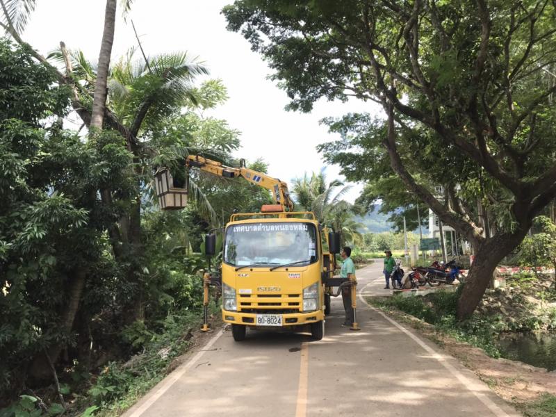 ตัดกิ่งไม้บริเวณสวนสาธารณะเฉลิมพระเกียรติดงหอหนองหล่ม