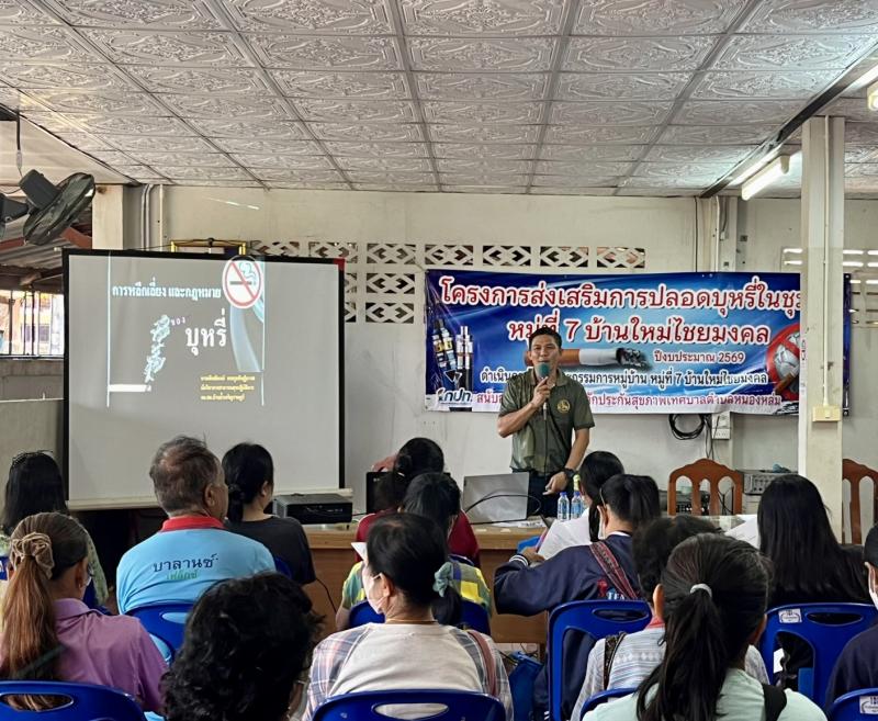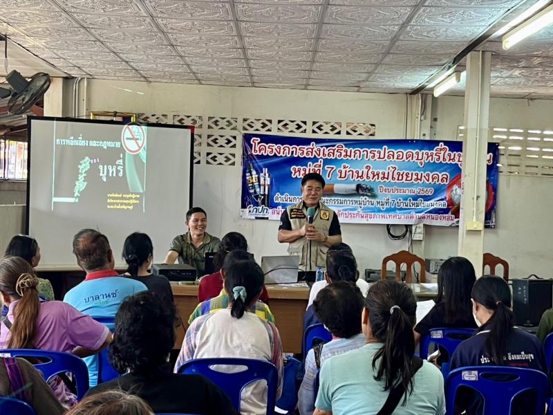 วันที่ 17 มีนาคม 2569 เวลา 09.00 น. นายศิริรับ เลิศคำ นายกเทศมนตรีตำบลหนองหล่ม เป็นประธานเปิดโครงการส่งเสริมการปลอดบุหรี่ในชุมชน พร้อมด้วย คณะผู้บริหาร สมาชิกสภาเทศบาล งานสาธารณสุข ผู้ใหญ่บ้านหมู่ที่ 7 ผู้ช่วยผู้ใหญ่บ้านหมู่ที่ 7 และประชาชนหมู่ที่ 7 เข้าร่วมโครงการ โดยมี นายพัฑฒิพงษ์ ตระกูลทิษฏินารส นักวิชาการสาธารณสุข จากรพสต.บ้านถ้ำเจริญราษฎร์ เป็นวิทยากรให้ความรู้ ณ อาคารเอนกประสงค์ หมู่ที่ 7 ตำบลหนองหล่ม