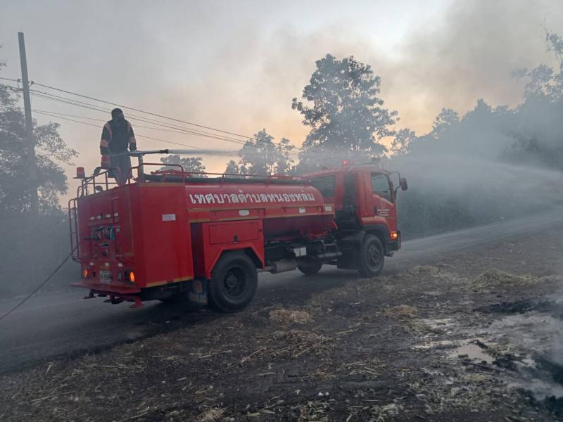 งานป้องกันและบรรเทาสาธารณภัยดับไฟบริเวณข้างถนนบ้านร่วมจิต หมู่ที่ 9