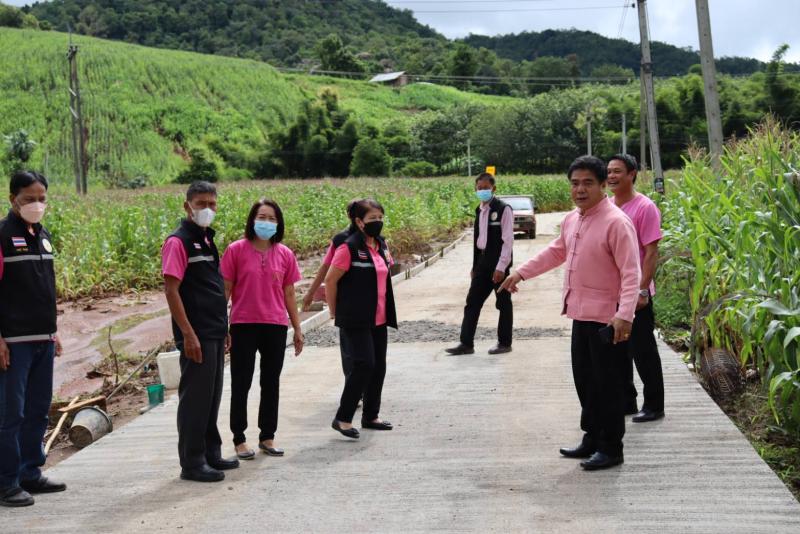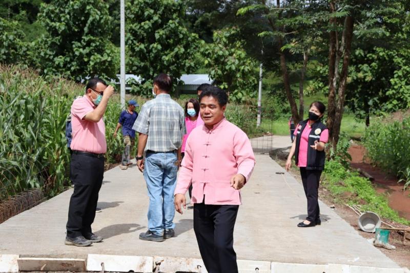ตรวจงานการสร้างถนนคอนกรีตทางเข้าป่าสุสาน บ้านปางงุ้น หมู่ที่ 6