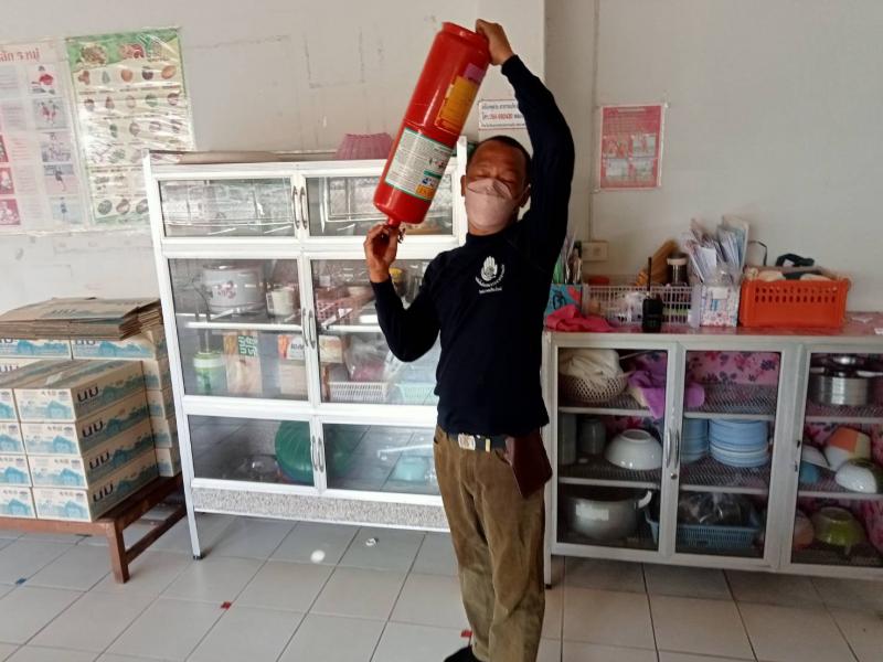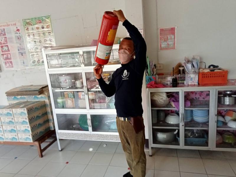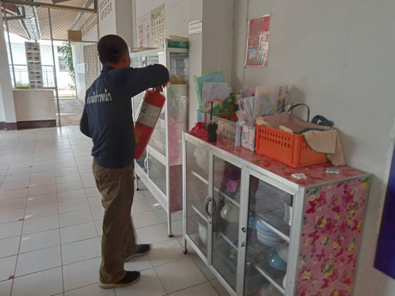 นายศิริรับ เลิศคำ นายกเทศมนตรี ตำบลหนองหล่ม มอบหมายให้ งานป้องกันฯ สำนักปลัด ตรวจเช็ดถังดับเพลิงศูนย์พัฒนาเด็กเล็ก บ้านใหม่