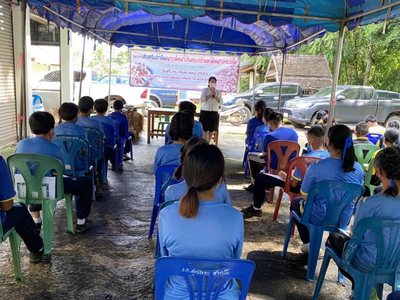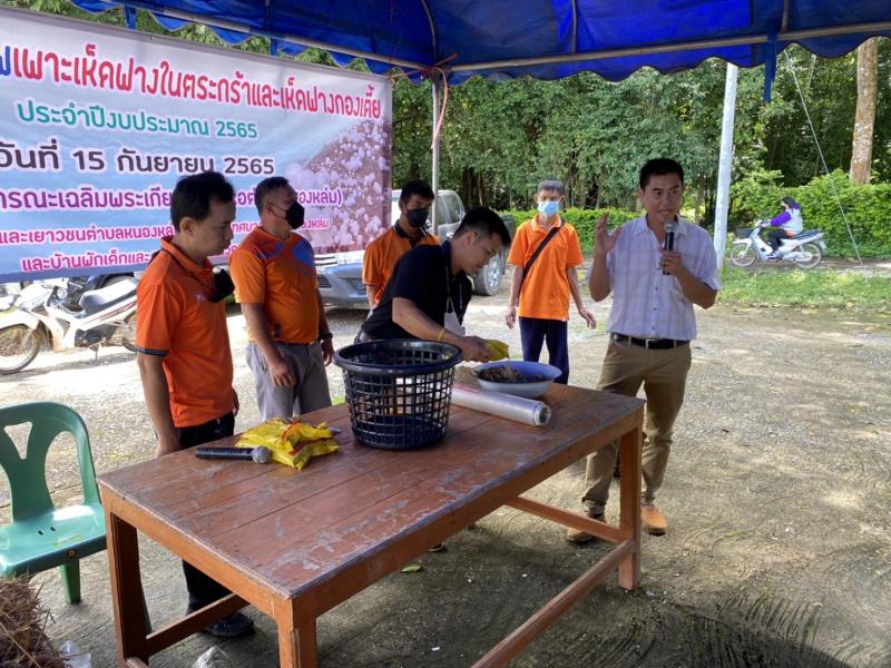 โครงการส่งเสริมอาชีพเพาะเห็ดฟางในตะกร้า และเห็ดฟางกองเตี้ย ประจำปีงบประมาณ 2565