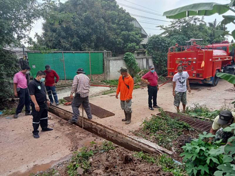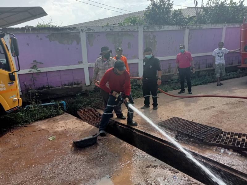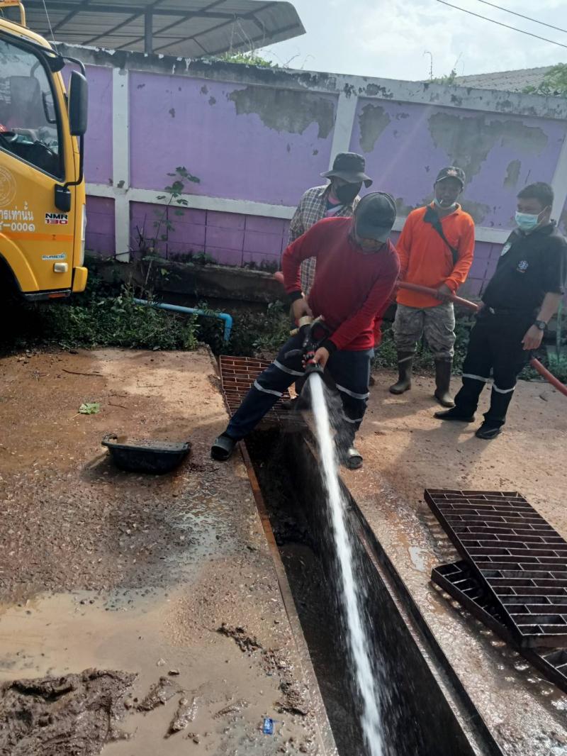 ขุดลอกพร้อมฉีดล้างทำความสะอาดร่องน้ำหลังวัดศรีล้อม หมู่ที่ 8